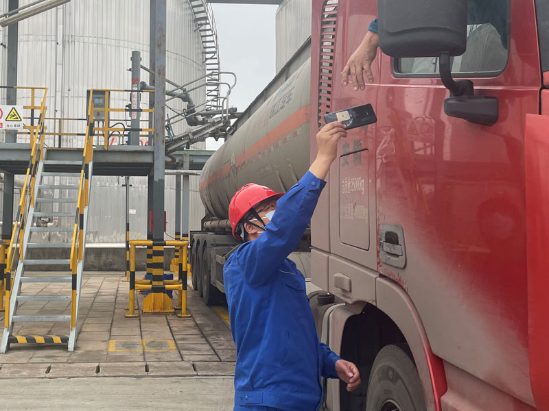 氯堿分公司黨支部黨員、綜合科科長(zhǎng)尤墩亞,在燒堿罐區(qū)例行檢查物流車輛防疫政策落實(shí)情況,嚴(yán)格執(zhí)行公司關(guān)于物流車輛防疫各項(xiàng)政策,檢查來司物流車輛駕駛員兩碼和核酸報(bào)告,筑牢公司疫情防控防火墻。